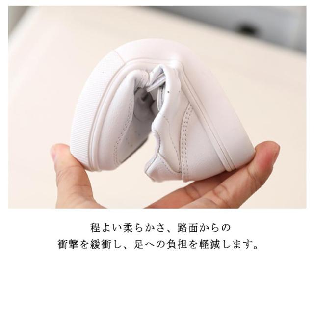 | 長いシーズンで活躍するキッズスニーカー 軽くて柔らかな風合い人工皮革を使用した、汚れたら拭き取るだけでお手入れ簡単です。 小さなお子様にも一人で履けるマジックテープ仕様、履き心地ラクラク♪ 程よい柔らかさ、路面からの衝撃を緩衝し、足への負担を軽減します。 単色使いなので、どんなスタイルにもコーデしやすいい! | |