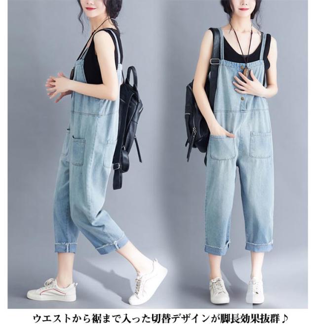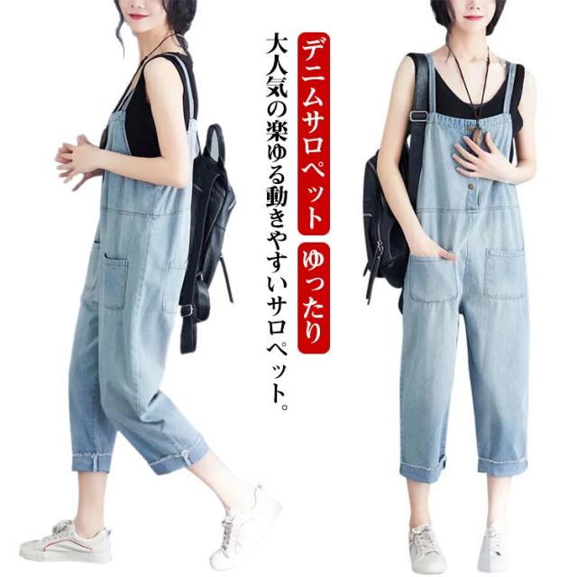 デニムサロペット 大人可愛い 大きいサイズ ゆったり オールインワン デニム サロペット サルエルパンツ デニムパンツ レディース オーバーオール ワイドパンツ ロングパンツ カジュアル パンツ 着痩せ 可愛い きれいめ 大きいサイズ 春 夏 秋 送料無料