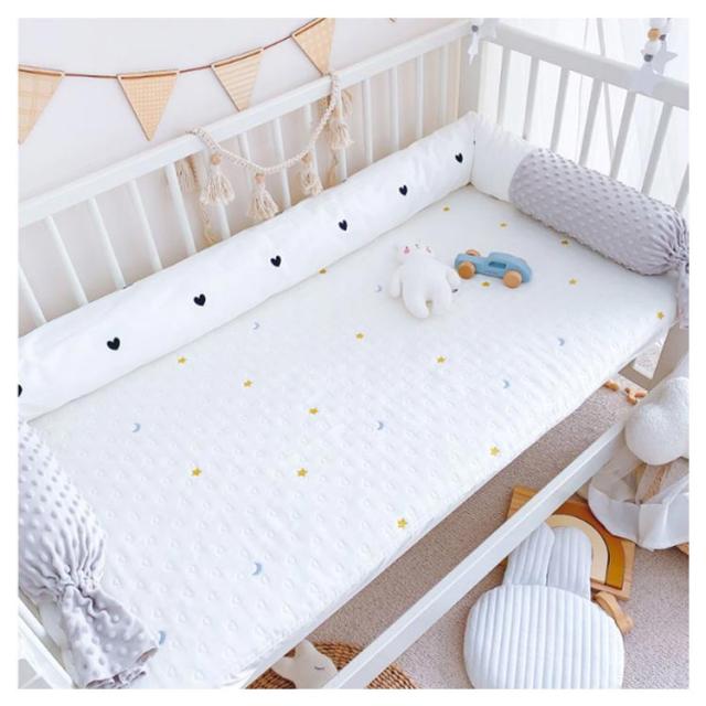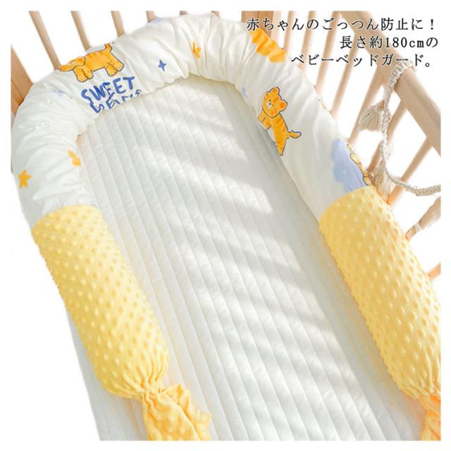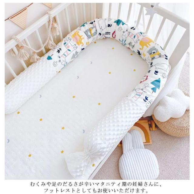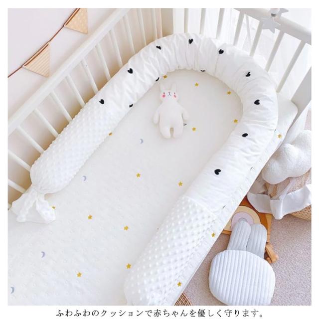 | 赤ちゃんのごっつん防止に!長さ約180cmのベビーベッドガード。 ふわふわのクッションで赤ちゃんを優しく守ります。 赤ちゃんの頭や手足がベット柵に当たった衝撃を吸収しケガ防止に役立ちます。 ベビーベッドの周りに置くことで寝返りなどの衝撃を和らげます。 むくみや足のだるさが辛いマタニティ期の妊婦さんに、フットレストとしてもお使いいただけます。 | |