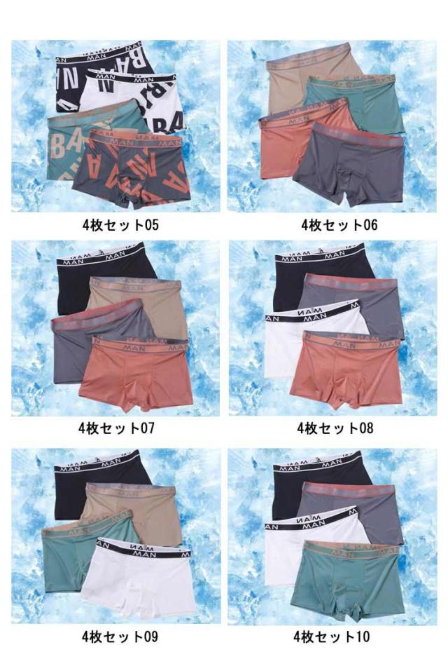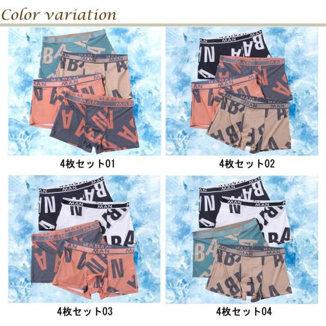 メンズ 下着 ボクサーパンツ 4枚セット 男性 アンダーウェア 吸汗速乾 パンツ 冷感 涼しい 通気性 快適 プリント おしゃれ インナーパンツ 速乾性 ひんやり ストレッチ 大きいサイズ 父 旦那 誕生日 プレゼント