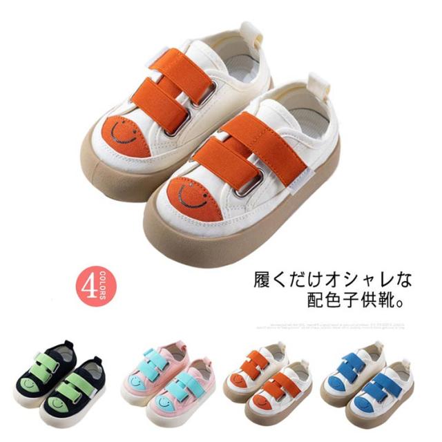 配色デザインがオシャレ♪ キッズ キャンバスシューズ スニーカー 上履き 子供靴 室内履き 女の子 男の子 ベビーシューズ 通学 通園 幼稚園 保育園 可愛い