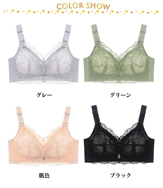 | 胸を小さく見せるブラ。胸の高さを自然に抑えるブラジャー♪ バストの膨らみを抑えて、より小さく、美しく。 フロントに施した華やかな刺繍レースが魅力♪ 脇も通常のブラジャーよりもしっかりとした脇高設計で、服を着た際に胸元がすっきりした印象になります。 ワイヤーでバストを締め付けないから、長時間つけていても疲れにくく、体に負担がかかりにくいです。 バスト全体をすっぽり覆い、広い範囲でホールドするので、下垂の原因となるユレも抑えます。 カラーは全4色。その日の気分やファッションに合わせてセレクト! | |