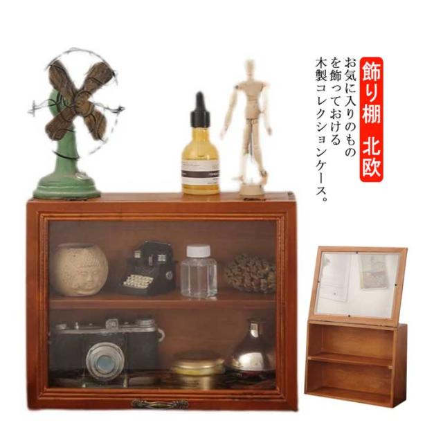 コレクションケース 木製 コレクション 棚 2段 ディスプレイケース ディスプレイ 棚 コレクションボード ショーケース キュリオケース 収納棚 フィギュアケース 扉付き レトロ 収納家具 収納ケース コレクションボックス 木製 飾り棚 ナチュラル シンプル 北欧