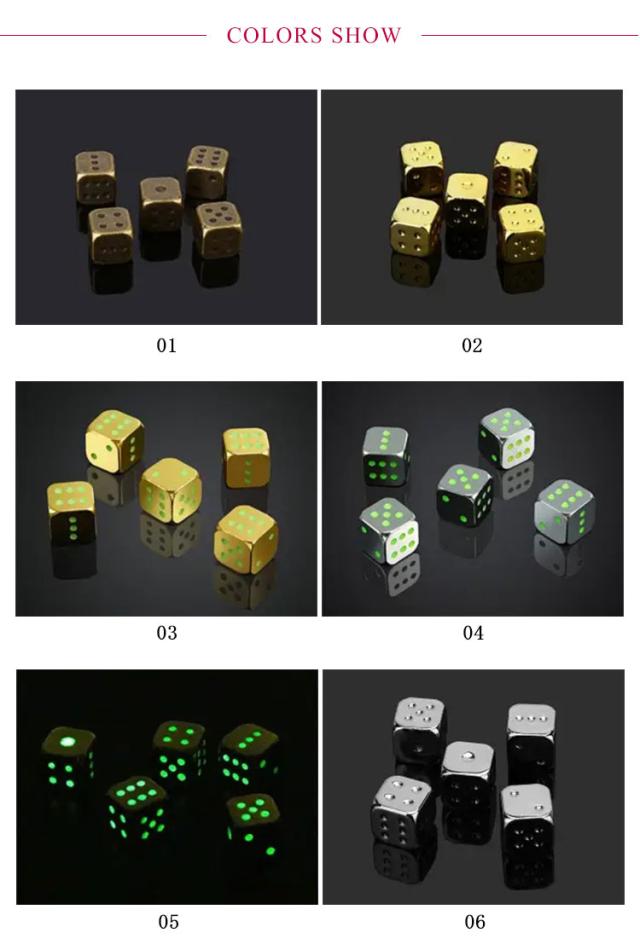 金属製のサイコロ ダイス メタルサイコロ 5個セット 金属 夜光性 シルバー ゴールド インテリア雑貨 キッチン雑貨 おしゃれ かわいい プレゼント ギフト 内祝い 送料無料