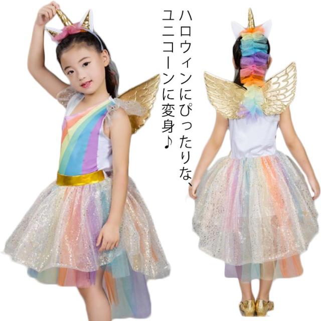 ハロウィン衣装 女の子 精霊 コスプレ ティンカーベル 子供 ユニコーン フェアリー 精霊 キッズ コスチューム 変装 仮装 服 翼 虹色 かわいい 子ども パーティー クリスマス 演出服 ステージ イベント halloween 送料無料