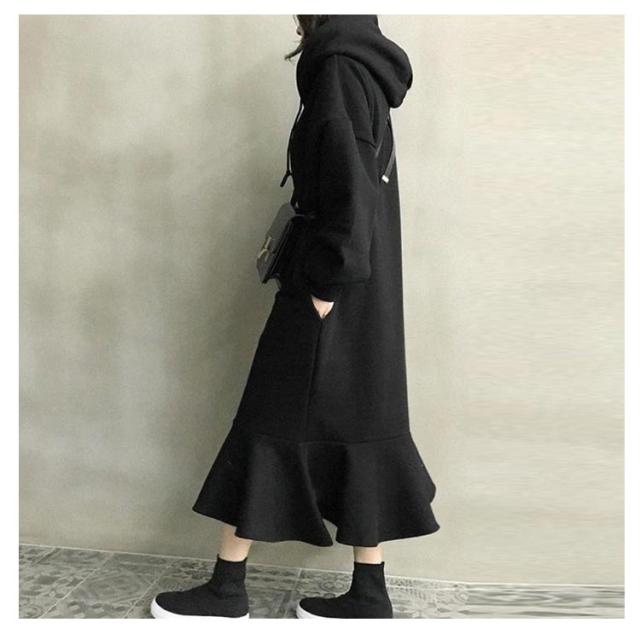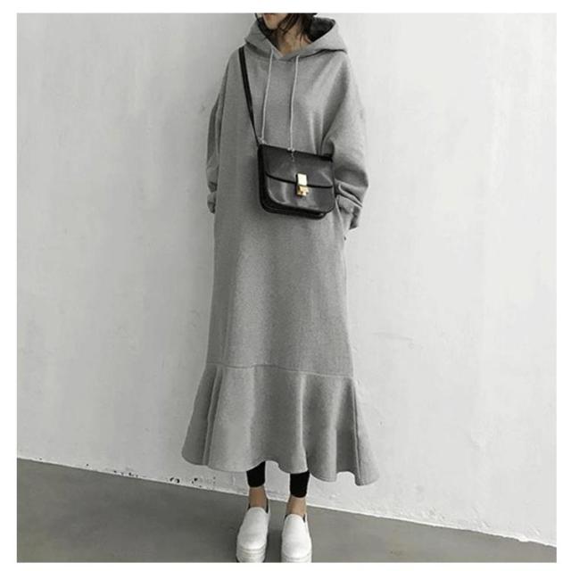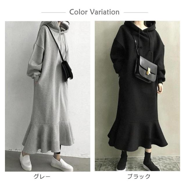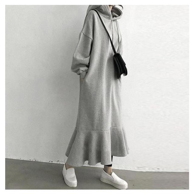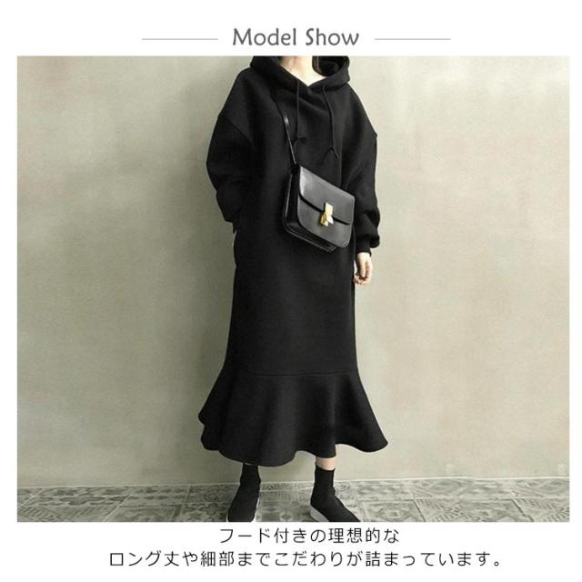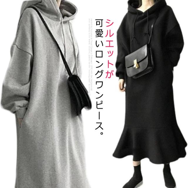 送料無料 ワンピース パーカー 秋冬 パーカーワンピース 長袖 ロングワンピース ロングワンピ フードワンピ フーディ カジュアル 可愛い 秋コーデ 冬コーデ 体型カバー 着痩 春 フリーサイズ