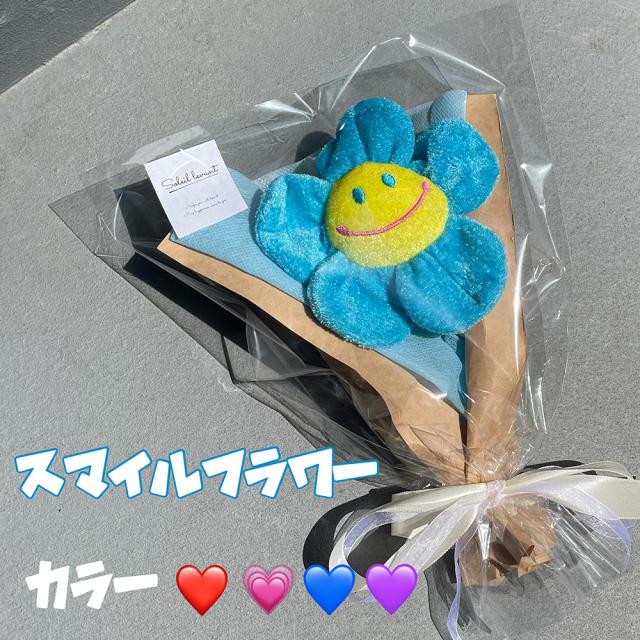 可愛すぎる!韓国でも大人気スマイルフラワー♪ 1輪を可愛くラッピング☆ お子様は勿論、ご家族、お友達、恋人など大切な方やお世話になった方への贈り物としてもオススメです! お部屋のディスプレイとしても! 普通の花束とは異なり、ぬいぐるみで出来た花束なので、永遠に思い出に残ります!