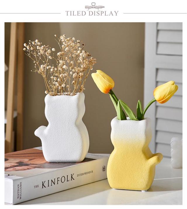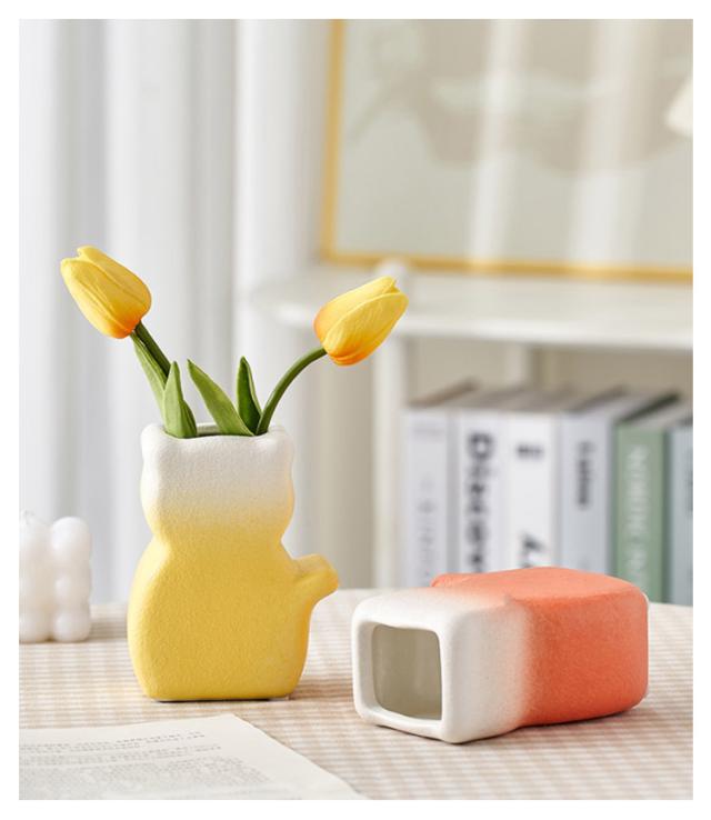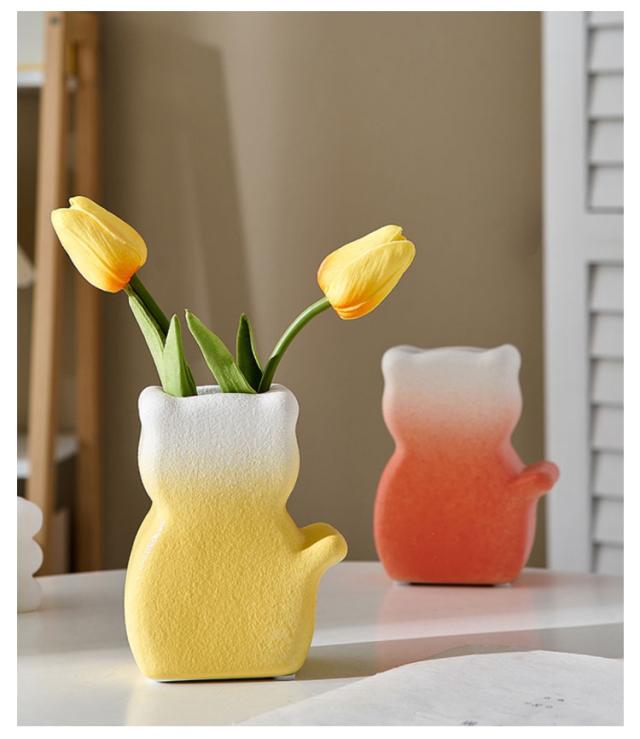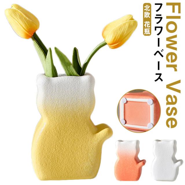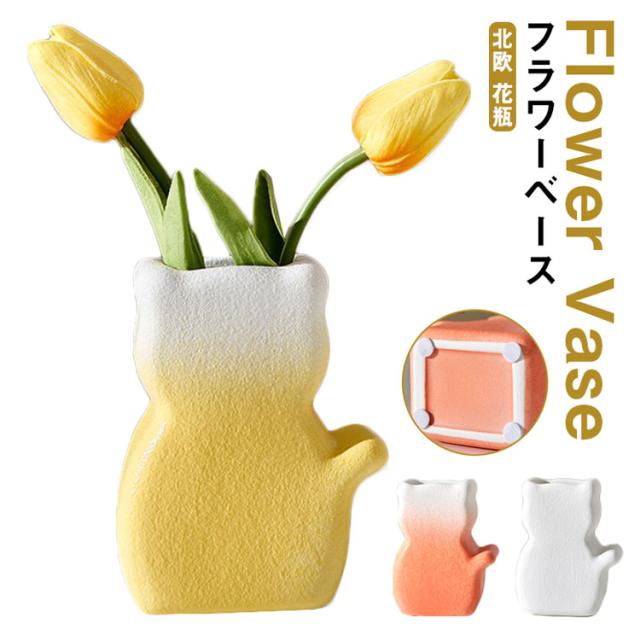 フラワーベース 陶器 ネコ 猫 花瓶 フラワーベース 和風 おしゃれ モダン 北欧 花瓶 オーナメント オブジェ 花瓶 陶器 一輪挿し ブーケ かびん 陶器 花びん 花器 生け花 花 ドライフラワー フェイク グリーン 花入れ 花立て 置き物 フラワーポット インテリア 雑貨 送料無料