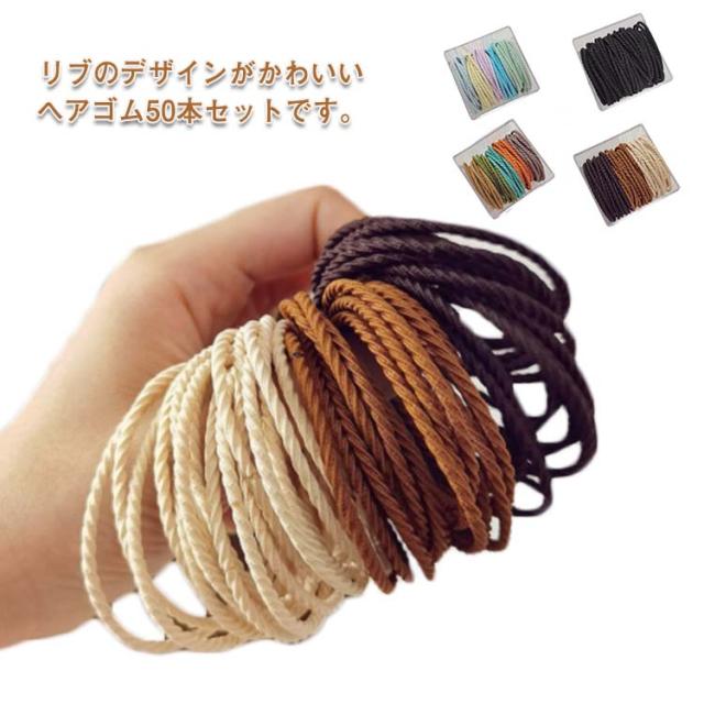 ヘアゴム 50本セット ロープ風 ヘアアクセサリー まとめ髪 おしゃれ ヘアアクセサリー リブ 細め ヘアアクセ 大人っぽい 髪留め 髪飾り ポニーテール 跡がつかない 大人 上品 オフィス カジュアル 女性 大人 可愛い 通勤 仕事 ギフト プレゼント 送料無料