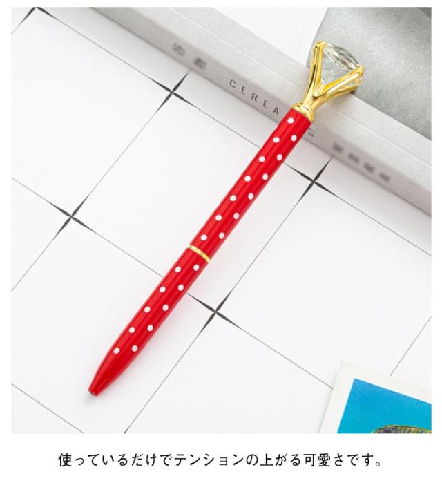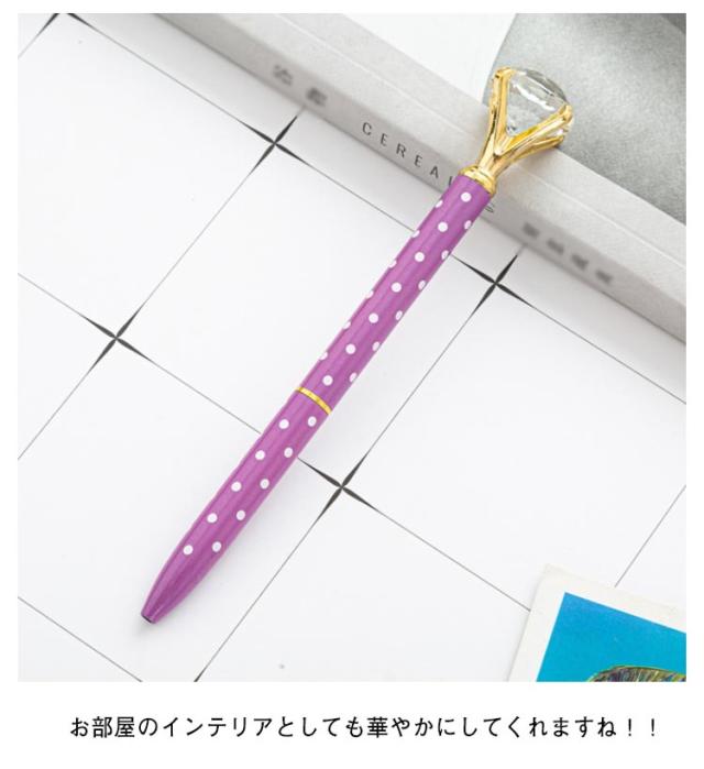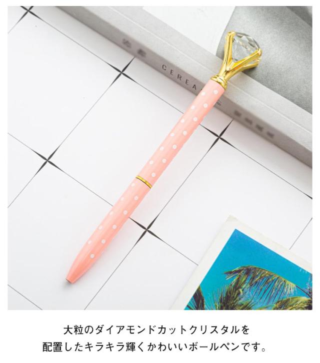 | ダイヤモンドモチーフのボールペン6本セットです。 ダイアモンドのクリスタルで、ステーショナリーが華やかに輝きます。 大粒のダイアモンドカットクリスタルを配置したキラキラ輝くかわいいボールペンです。 カラーバリエーションも豊富に取り揃えております。プレゼントに最適☆ ロール式で滑らかな書き心地です♪ お部屋のインテリアとしても華やかにしてくれますね!! 使っているだけでテンションの上がる可愛さです。 | |