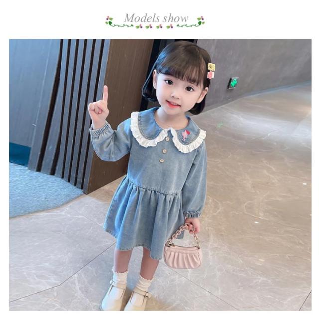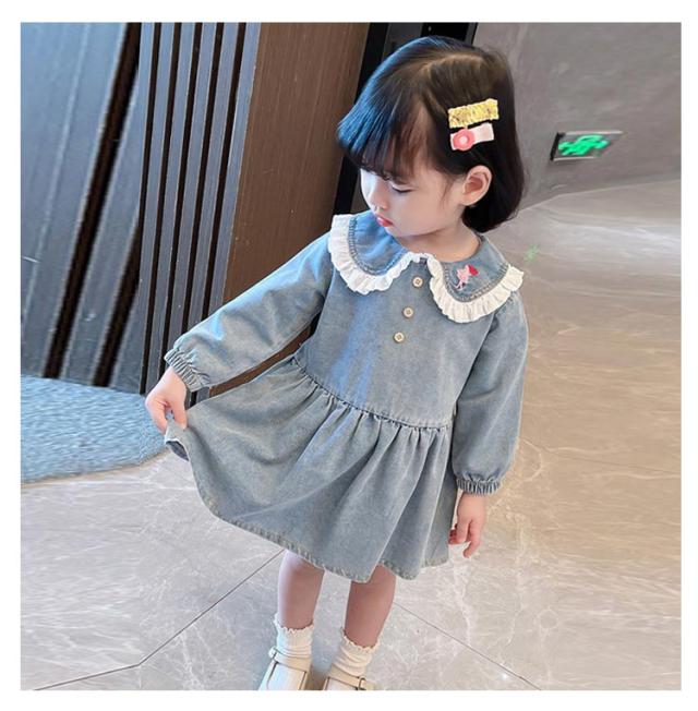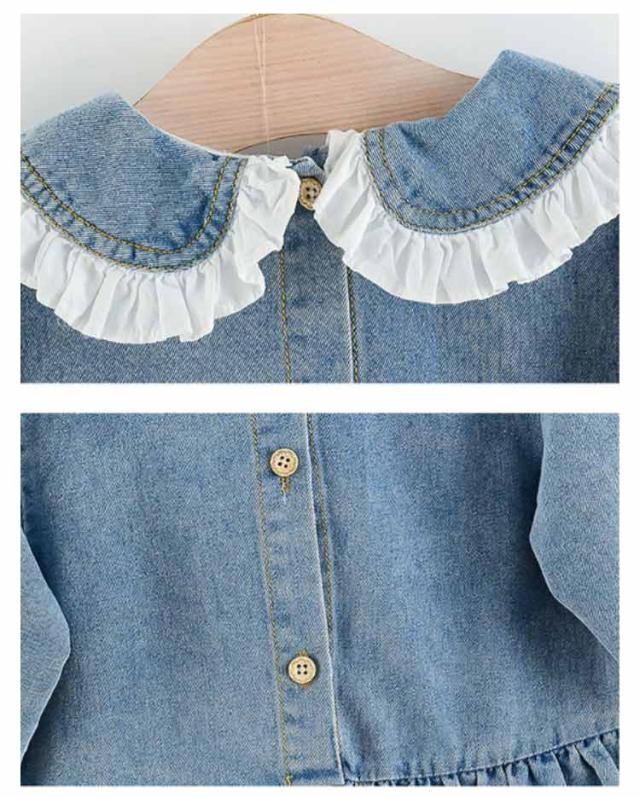 子供服 ワンピース キッズ 女の子 デニムワンピース シャツワンピース 長袖 膝丈 春服 秋服 デニム 子ども服 ベビー服 女児 ガールズ フレア Aライン おしゃれ かわいい 襟付きワンピース 前ボタン セーラー服 カジュアル キュート 日常 定番 送料無料