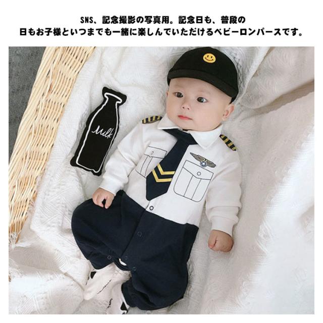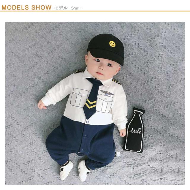 【送料無料】ベビー服 長袖 男の子 ベビーロンパース ボーイズ 赤ちゃん ネクタイ 乗務員 cosplay コスプレ ベビー 写真撮影 写真記念 日常 出産祝い 誕生日 プレゼント 春 夏 秋 可愛い イギリス風