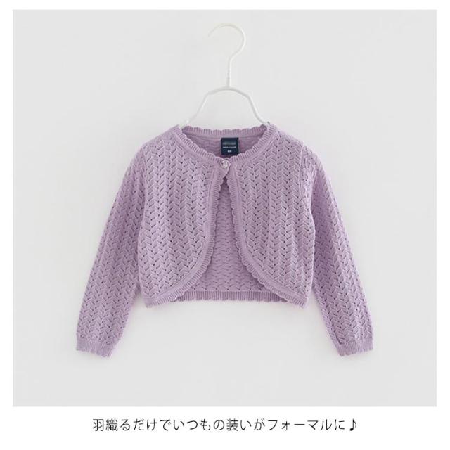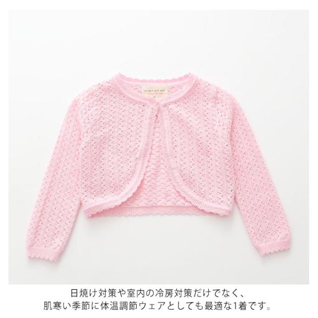 | 羽織るだけできちんとフォーマルスタイル!キッズ向けボレロ 肌にやさしいコットン素材だから、気軽に羽織るのが魅力です。 羽織るだけでいつもの装いがフォーマルに♪ 軽くて着やすく、ノースリーブのワンピースに羽織っていただけのにぴったりです。 日焼け対策や室内の冷房対策だけでなく、肌寒い季節に体温調節ウェアとしても最適な1着です。 女の子の可愛さを引き立たせてくれるとっても可愛いデザイン! | |
