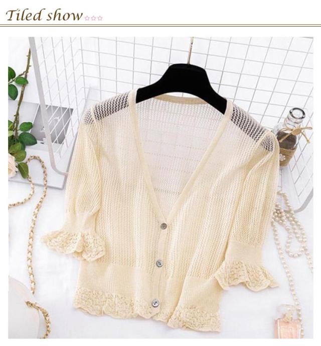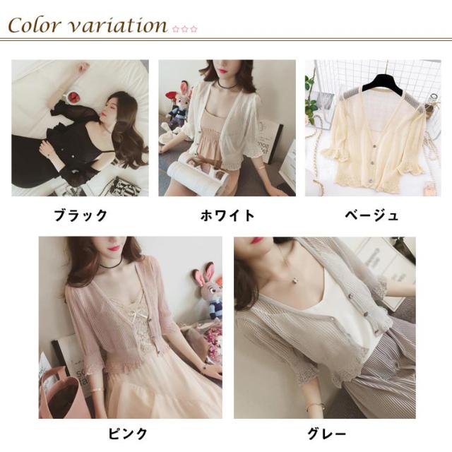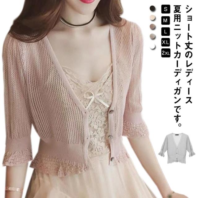 カーディガン 薄手 レディース 春夏 UVカット 通勤 ゆったり トップス 透かし編み 紫外線対策 5分袖 ボレロ サマーカーディガン Vネック 無地 シンプル 可愛い きれいめ 冷房対策 涼しい 通気性 送料無料