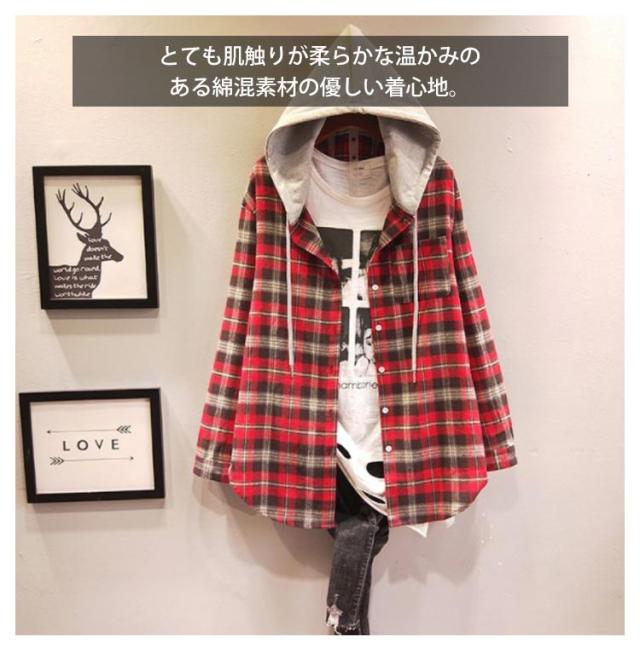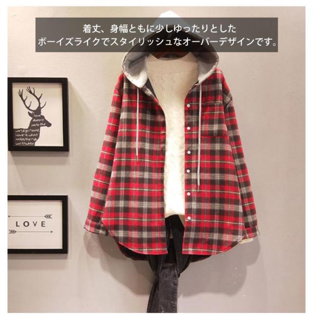 シャツパーカー フード付きシャツ シャツコート シャツジャケット レディース アウター ロングシャツ ネルシャツ オーバーサイズ 秋服 秋物 ゆったり 体型カバー チェック柄 大きサイズ 送料無料