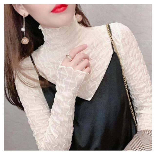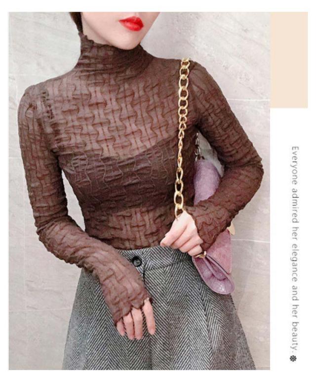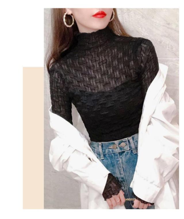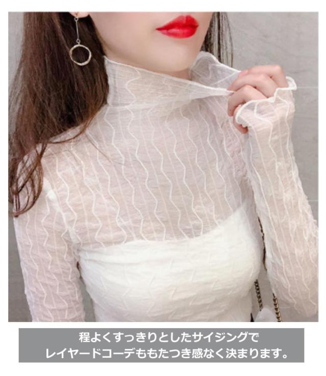 シースルレース トップス ブラウス インナー フリル ハイネック シースルートップス レース トップス ブラウス ロングスリーブ プルオーバー 透け感 セクシー 春 夏 秋 冬 おしゃれ キレイめ 送料無料