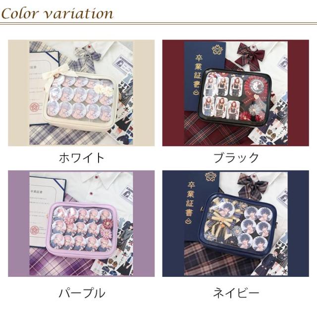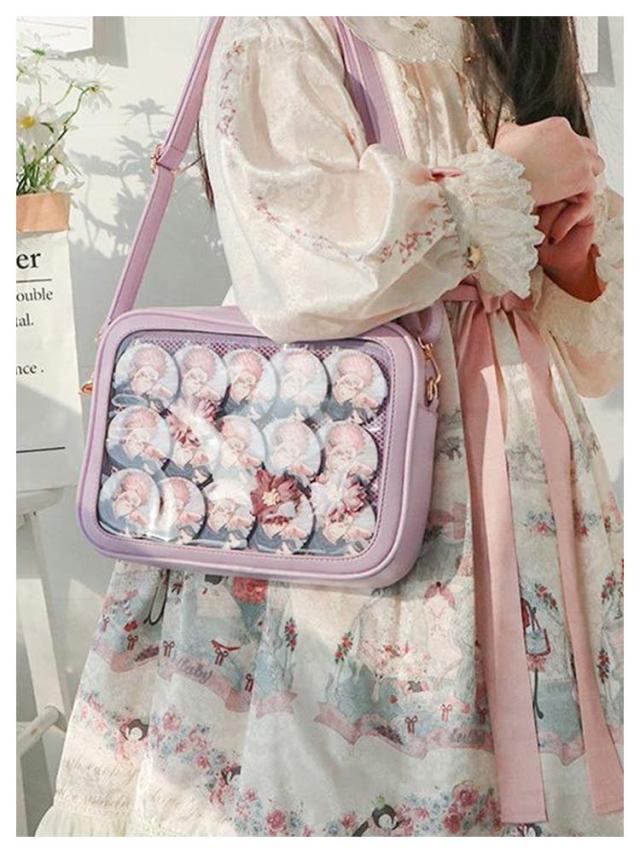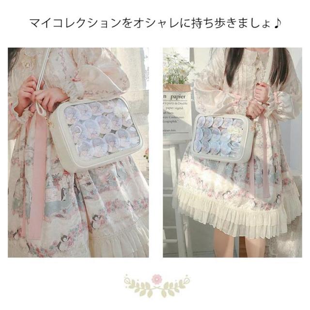 | 自分のコレクションを持ち歩けるバッグです。 マイコレクションをオシャレに持ち歩きましょ♪ バッグの透明ポケットで見せたいアイテムで自分の好みにアレンジできます。 好きな芸能人やアニメキャラの写真、缶バッジ、ストラップ、ぬいぐるみ、萌グッズなど入れて一目瞭然です。 | |