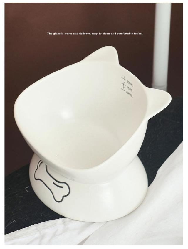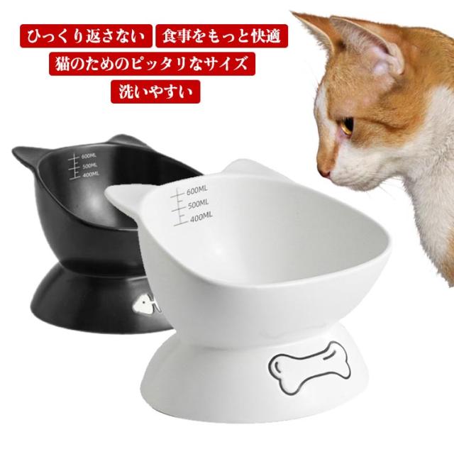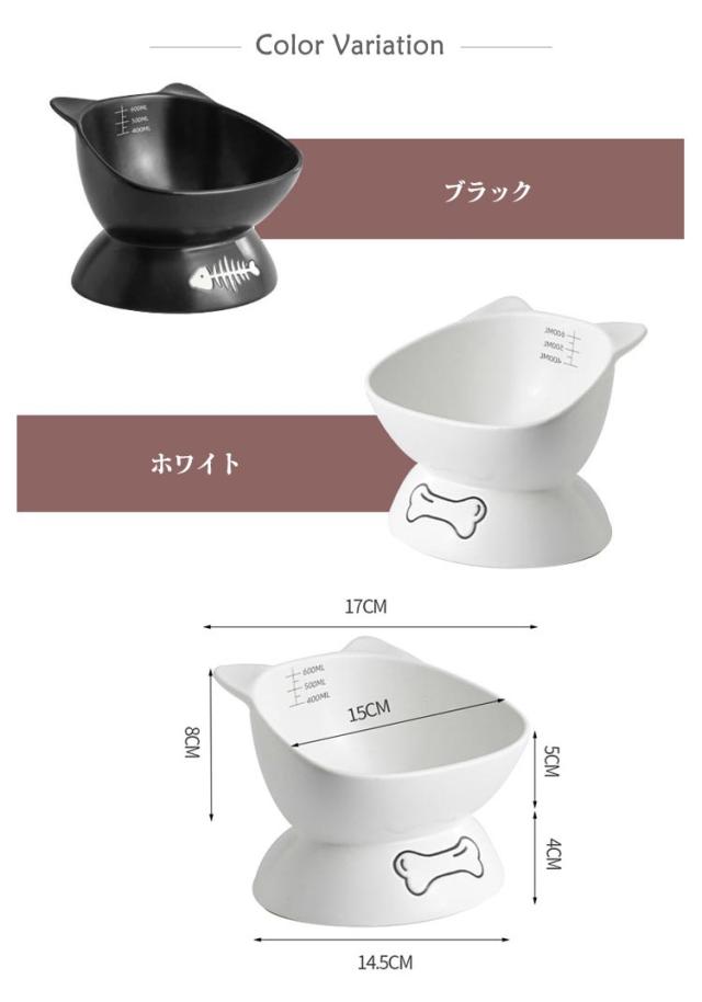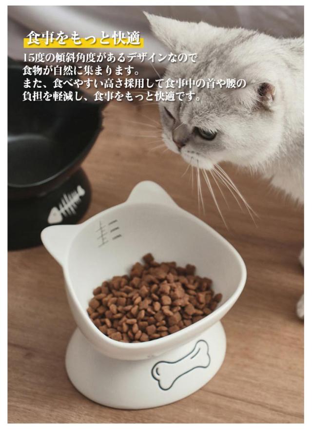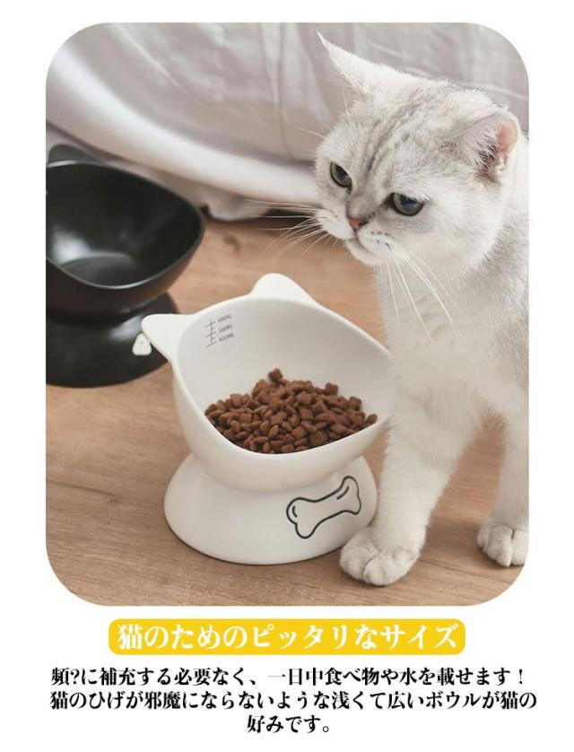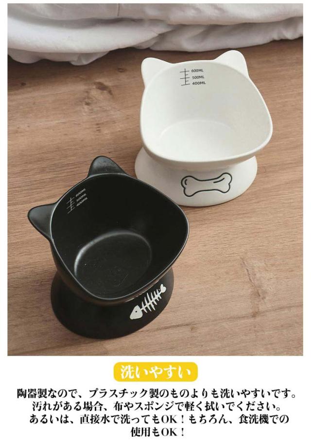 送料無料 フードボウル 猫用 犬用 陶器 斜め 頚椎保護 ペットグッズ ペット食器 ペット用 スタンド 脚付 滑り止め セラミック エサ入れ シンプル 餌皿 水入れ エサ皿 お皿 かわいい おしゃれ 高級感 子猫 子犬 猫耳 黒 白