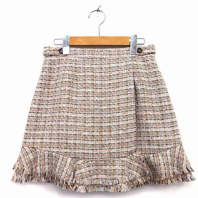 【中古】リランドチュール Rirandture 台形 スカート 膝上 ミニ スエード調 フリンジ フロントクロス 綿混 1