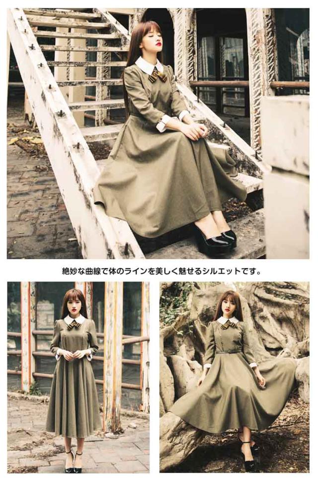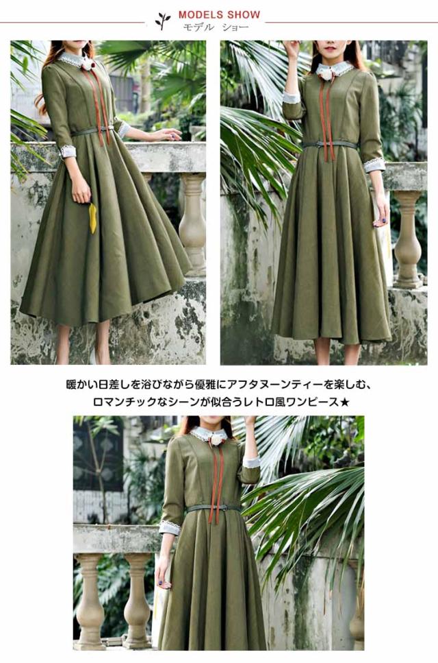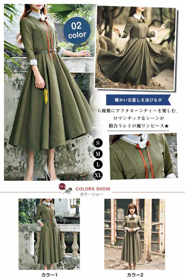 英国のお嬢様のように着ているクラシック一品。ワンピース マキシワンピース ロングワンピース ロングドレス トレロ マキシ 長袖 クラシック 秋冬 春秋 フレア 森ガール エレガントZOKO