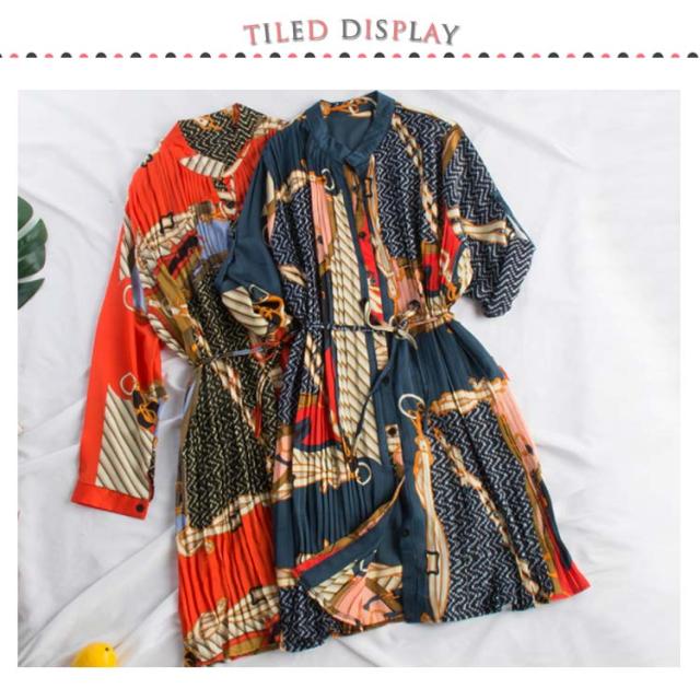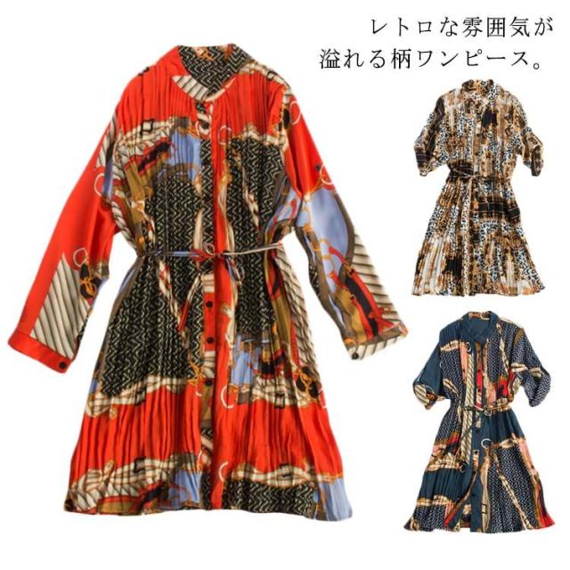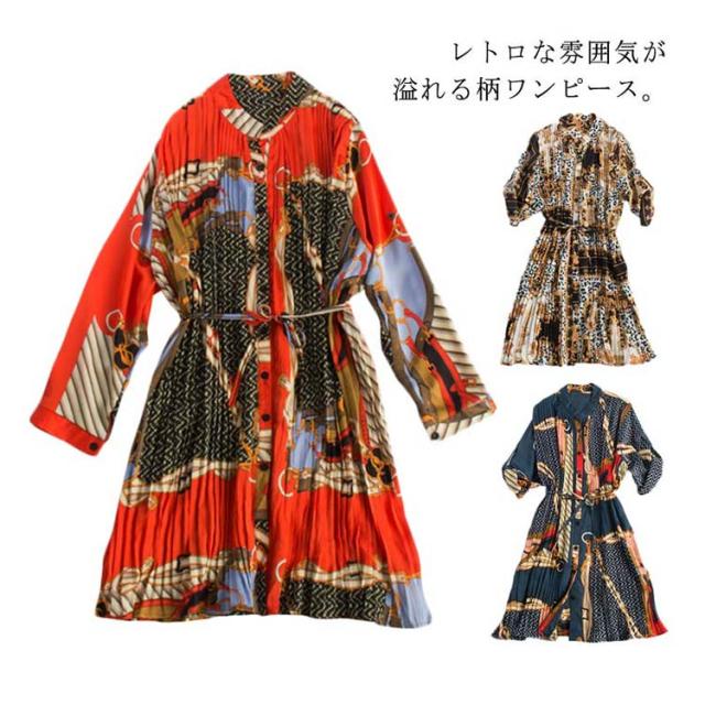 レトロな雰囲気が溢れるワンピース プリーツ 長袖ワンピース シャツワンピース レディース スタンドカラー 長袖 ロングワンピース ロングシャツ 春夏 秋冬