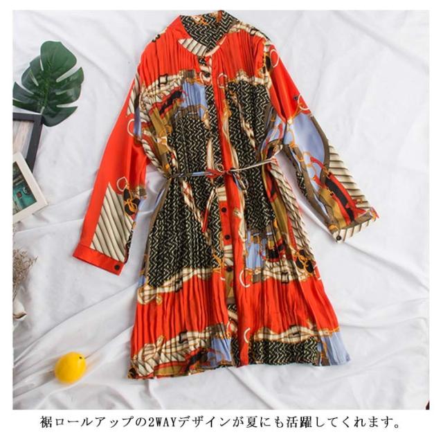 | レトロな雰囲気が溢れる柄ワンピース。 さらりと肌触りの生地で、通気性よく、オールシーズン活躍する優れもの。 裾ロールアップの2WAYデザインが夏にも活躍してくれます。 首周りをすっきりしたスタンドカラーがこなれた大人の印象。 ウェスト紐でリボンをつけてアクセントにしてスタイルアップ効果も◎ | |