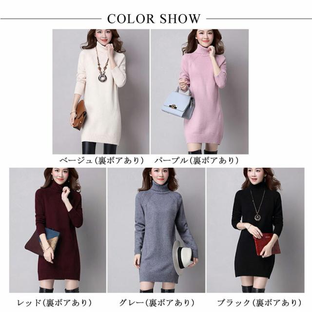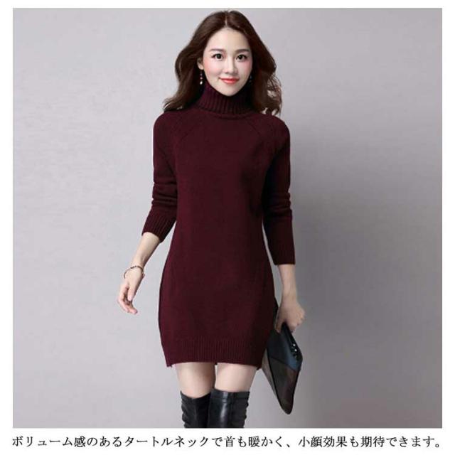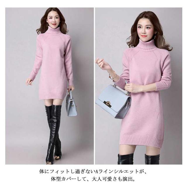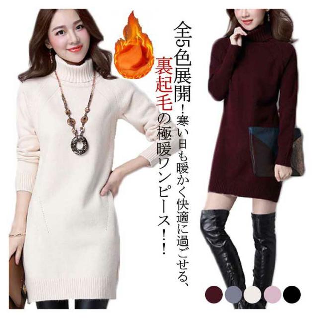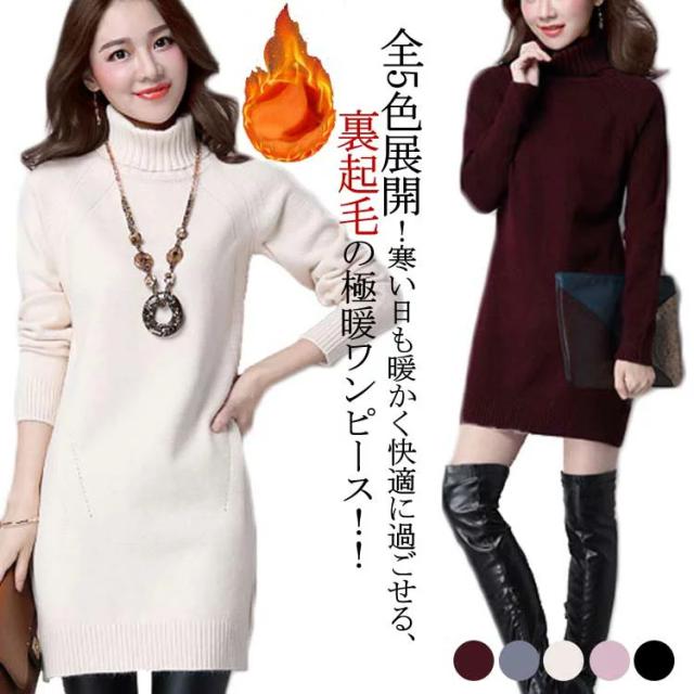 タートルネックニットワンピース 5色 裏起毛 ニットワンピース タートルネック ニット ワンピース 長袖 セーター ロング 無地 防寒 暖かい 秋冬
