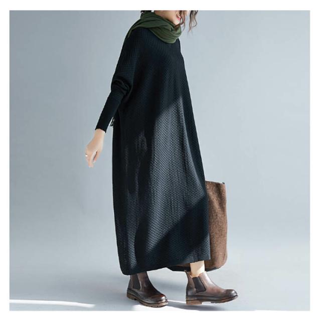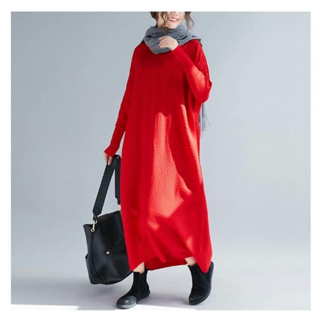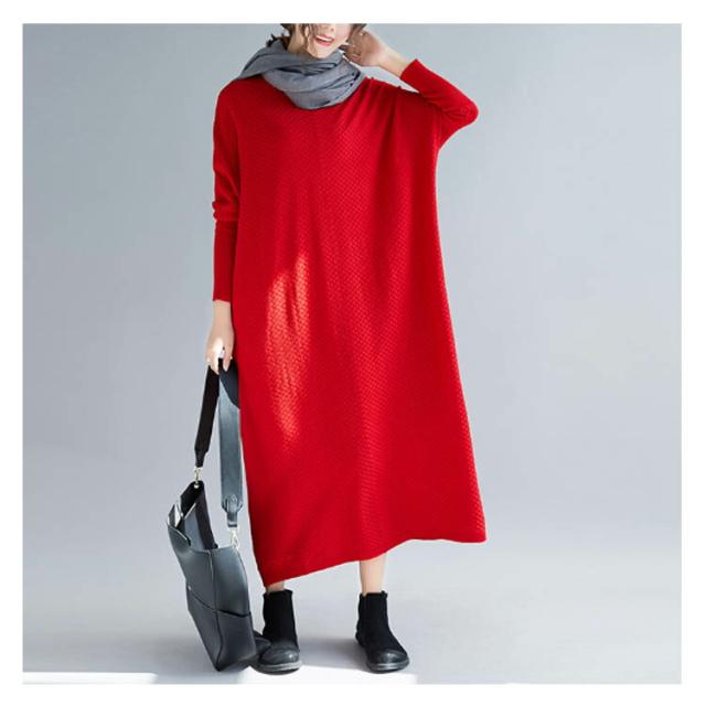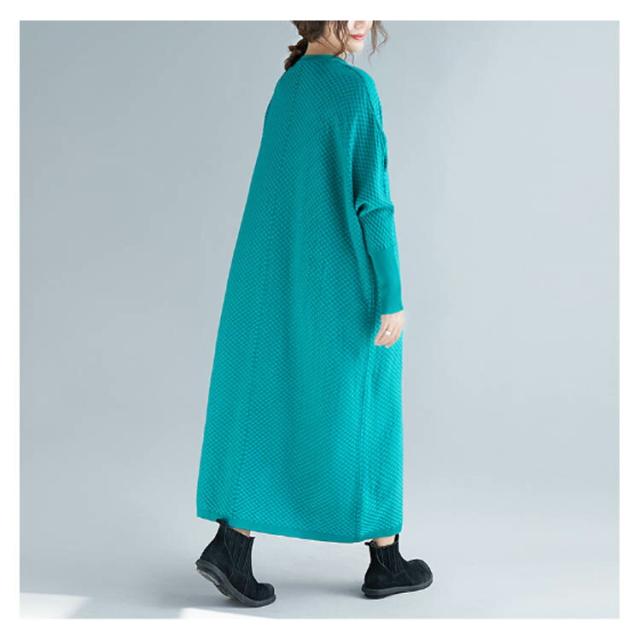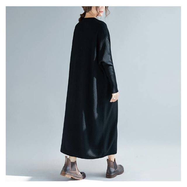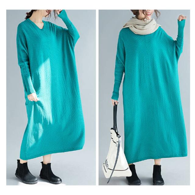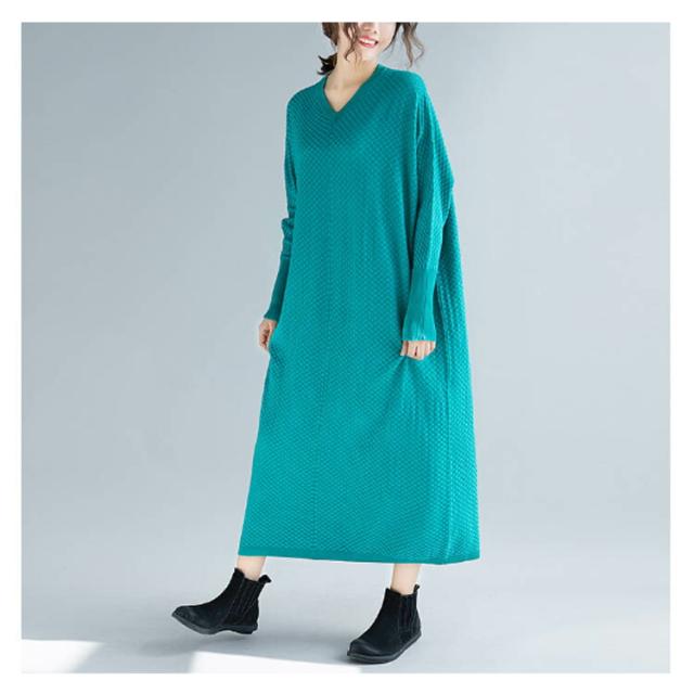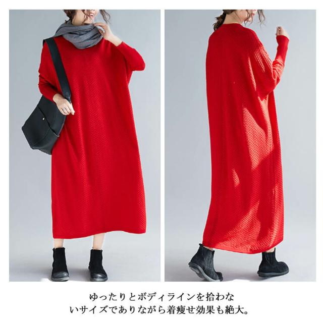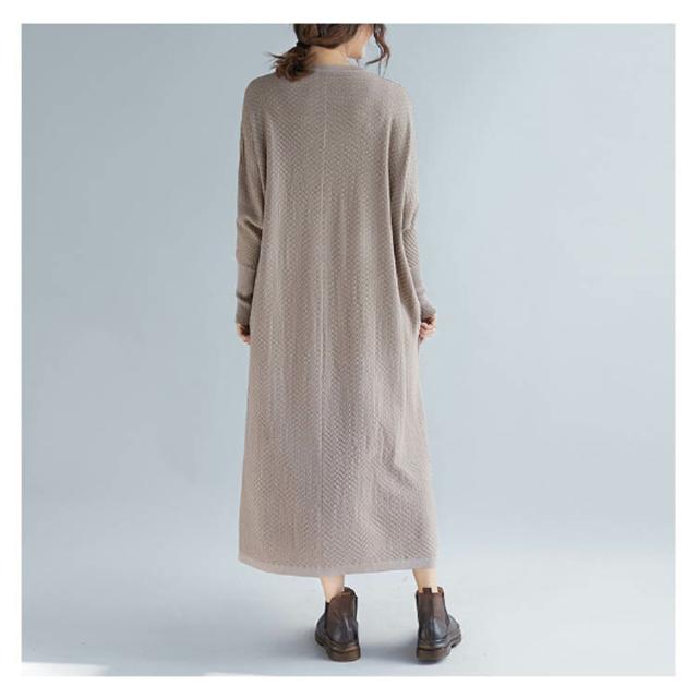 ルーズなシルエットがストレスゼロ!マキシ ニットワンピース Vネック マキシワンピース マキシニットワンピース 秋冬 ニットワンピ 長袖 ゆったり 体型カバー シンプル 無地 ドルマンスリーブ