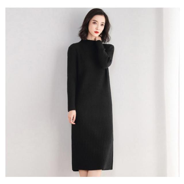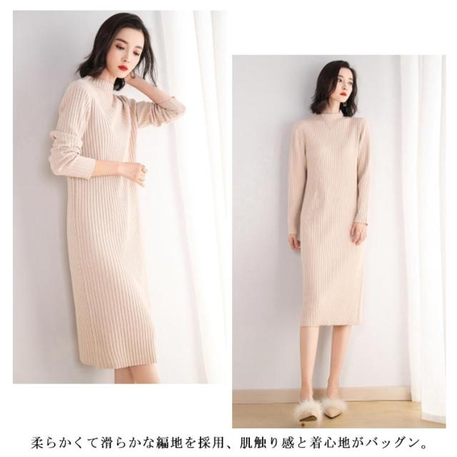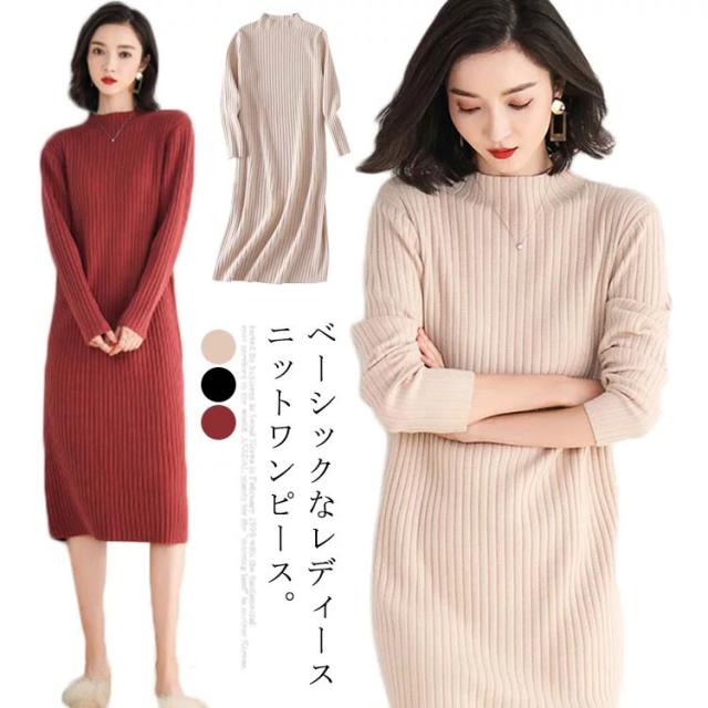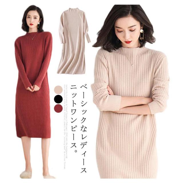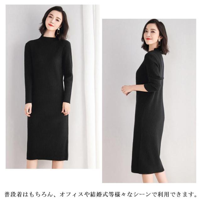 全3色 ニットワンピース ニットドレス ニットワンピ ニット ワンピース ドレス レディース シンプル リブ 長袖 ロング丈 お呼ばれ 着痩せ 秋冬 無地 大人 結婚式 オフィス 通勤 OL