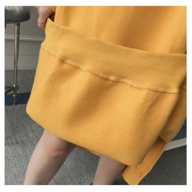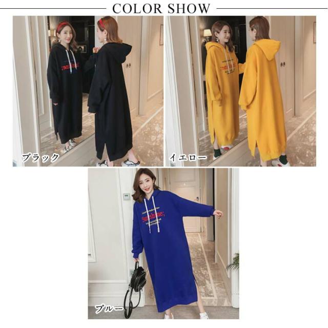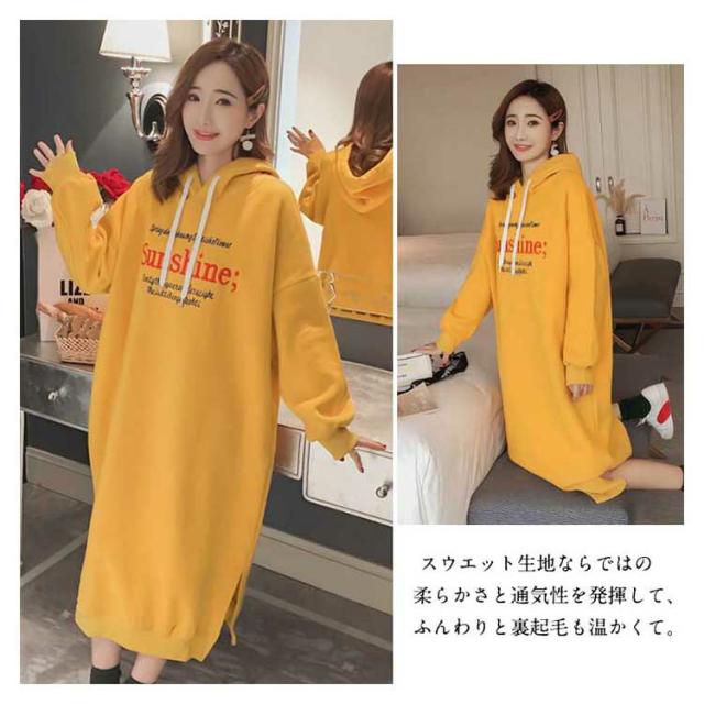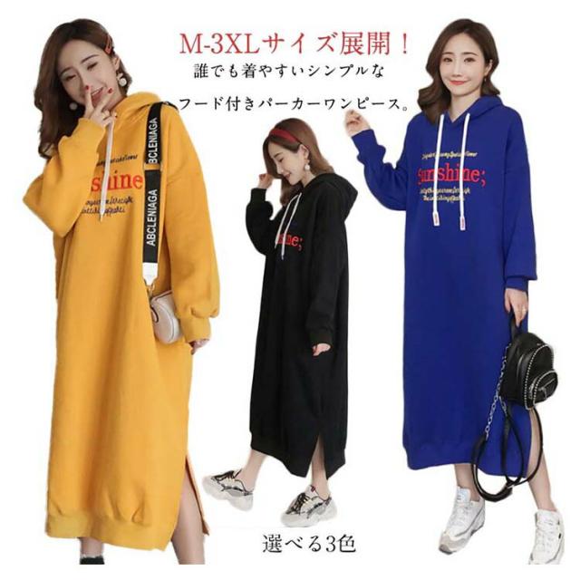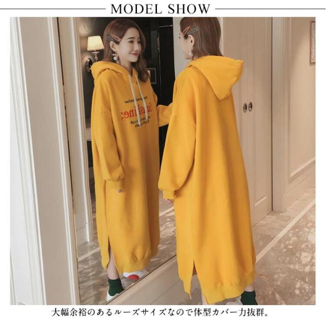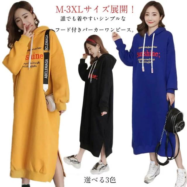 | M-3XLサイズ展開!誰でも着やすいシンプルなフード付きパーカーワンピース。 大幅余裕のあるルーズサイズなので体型カバー力抜群。 スウエット生地ならではの柔らかさと通気性を発揮して、ふんわりと裏起毛も温かくて。 サイドスリット入りが歩きにくさを軽減します。 デイリーに着回しやすいなブラックとイエローとブルーの3色ご用意しました。 膝下にかかる丈感が体をすっぽり包んでくれて、ショートブーツとの合わせもOK。 アウターも羽織りやすいので秋冬のワードローブに加えやすく、タウン使いはもちろん、ルームウェアとしても幅広くお使い頂けます。 | |