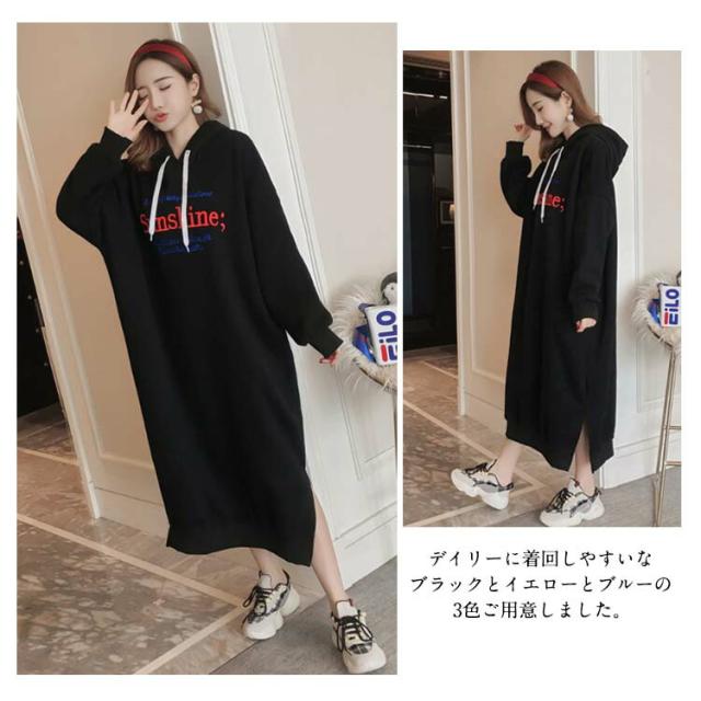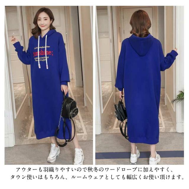 ビッグシルエット!裏起毛ロングワンピース パーカーワンピース ロング丈 ミモレ丈 裏起毛 ワンピース 大きサイズ スリット入り フード付き 厚手 冬物 秋冬 部屋着 おしゃれ かわいい