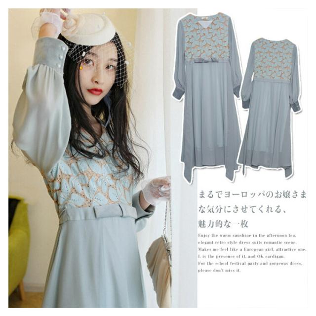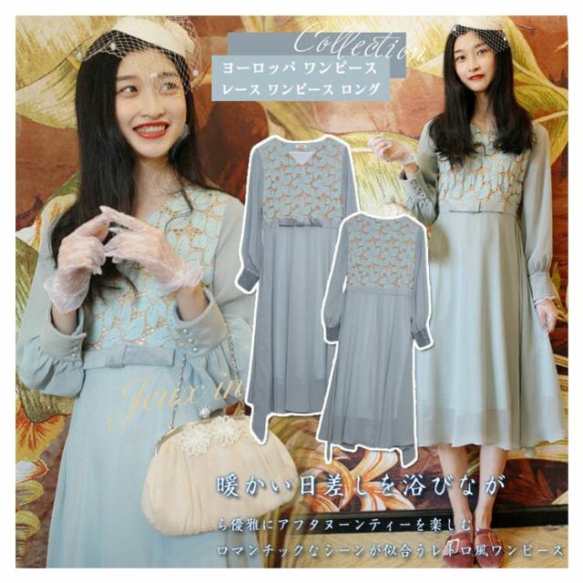 ヨーロッパ ワンピース お嬢様風 ドレス ワンピース レース ワンピース ロング ワンピース レトロ風 ワンピース 長袖 エレガント フェミニン レディース