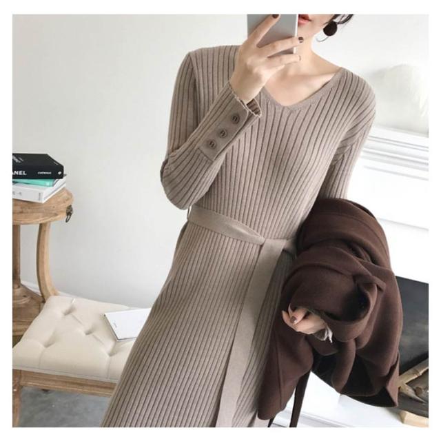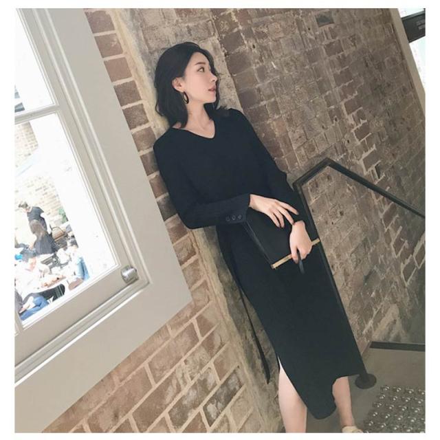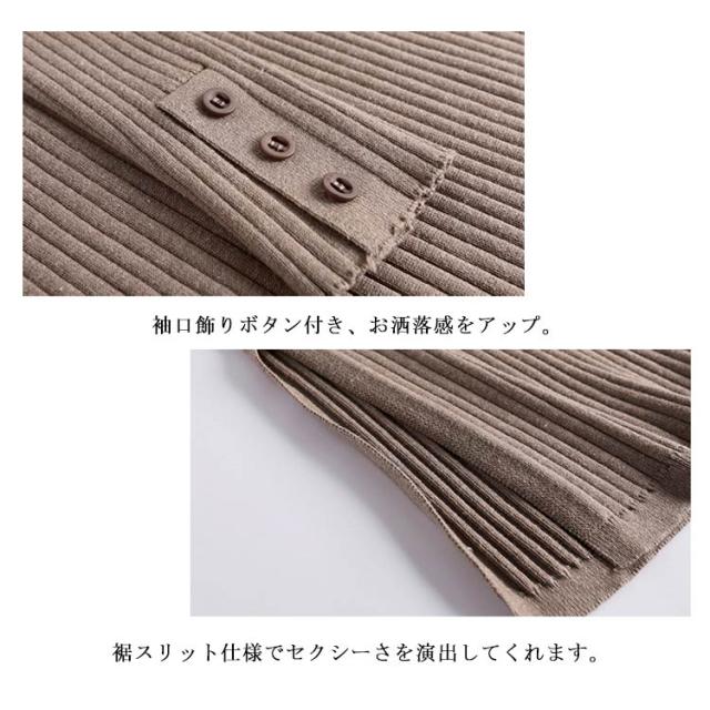 | 実用性なニットワンピース。 柔らかくて滑らかな編地を採用、肌触り感と着心地がバッグン。 シンプルなリブVネックデザインはどんなアイテムにも合わせやすい。 ウエストベルト付きで自由に調整出来ます。 袖口飾りボタン付き、お洒落感をアップ。 裾スリット仕様でセクシーさを演出してくれます。 普段着はもちろん、オフィスや結婚式等様々なシーンで利用できます。 | |