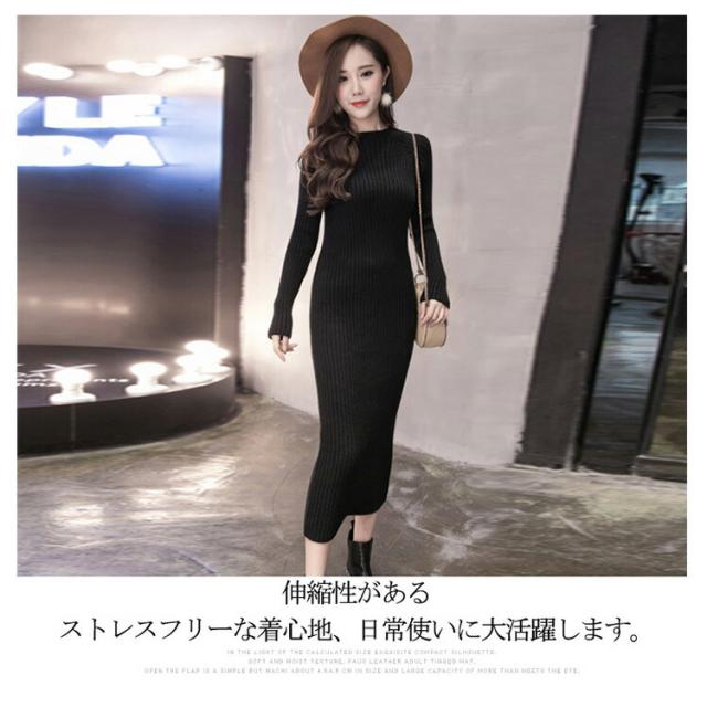 ニットワンピース ロングワンピース ニット ミモレ丈 レディース 長袖 ワンピース タイトワンピース 美ライン 春 秋 冬 大人の女子 パーティー 結婚式 デート