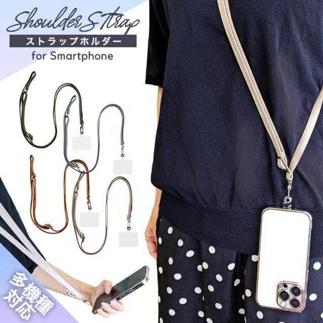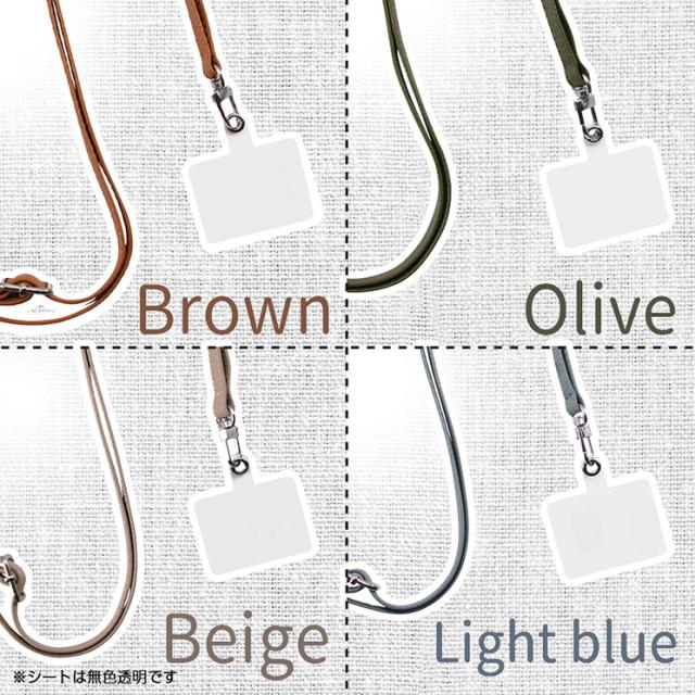 スマホ 汎用 マルチ ストラップ PUレザー ブラウン オリーブ ベージュ ライトブルー ショルダー ベルト 斜め掛け ひも 紐 ネック 透明 落下防止 iPhone スマートフォン シンプル オシャレ おしゃれ かわいい 大人 おとな イングレム