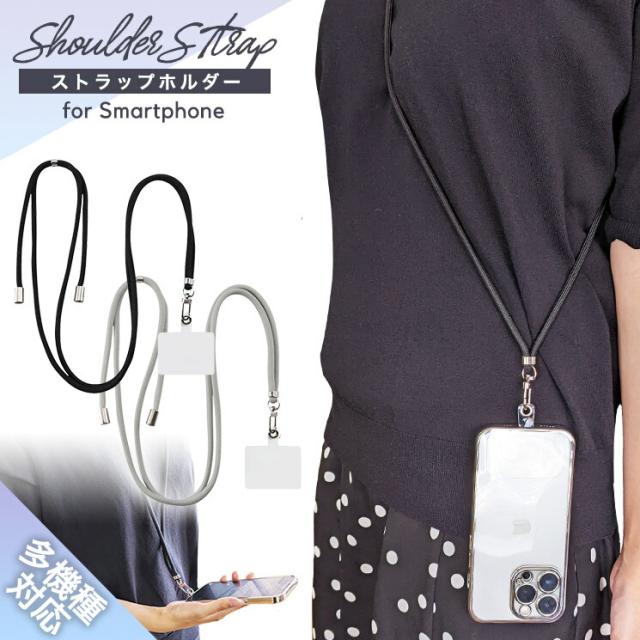 スマホ 汎用 マルチ ストラップ ブラック グレー ショルダーストラップ ロープ 透明 落下防止 iPhone スマートフォン シンプル オシャレ おしゃれ かわいい イングレム