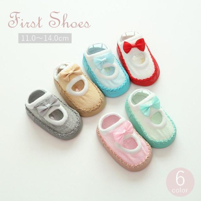 ファーストシューズ ソックスシューズ ベビー 赤ちゃん 男の子 女の子 ルームシューズ 室内履き 滑り止め付き リボン かわいい