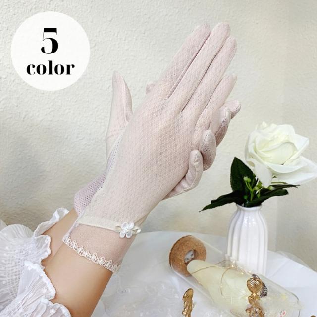 UVカット手袋 日焼け止め手袋 レディース 女性用 グローブ ハンドカバー レース ミドルレングス 日焼け防止 紫外線防止 通気
