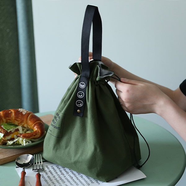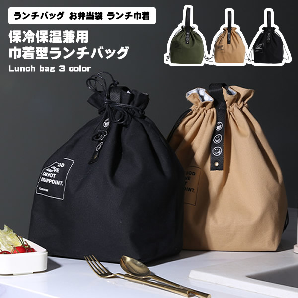 ランチバッグ お弁当袋 ランチ巾着 弁当袋 エコバッグ 折りたたみ ランチ お弁当 巾着 保冷バッグ 保温バッグ 綿製 保冷 保温 シンプル アースカラー ナチュラル 無地 軽量 男女兼用 通勤 通学