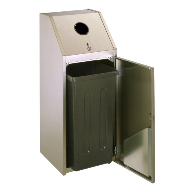●屋内外問わずに配置できるオールステンレス製の丈夫なダストボックスの丸穴蓋タイプです。