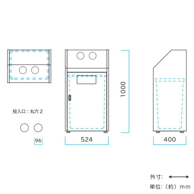 | サイズ | 約 幅52.4×奥行40×高さ100(cm) 丸穴投入口:約 直径9.6(cm) |