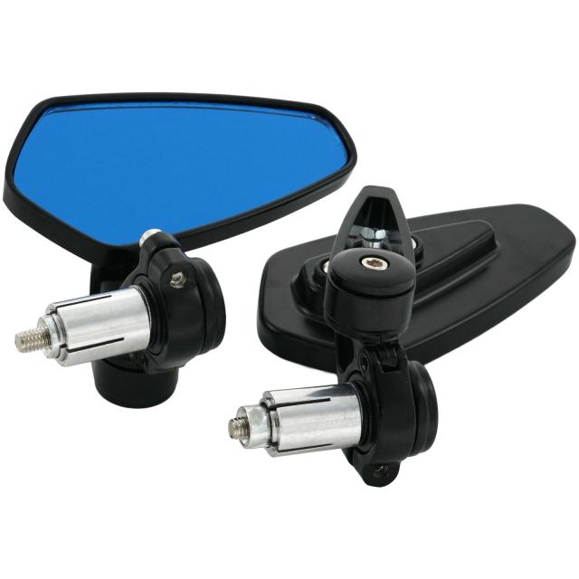 MIRAX バイク ミラー ペンタゴン バーエンド ブルーミラー 左右セット ブラック 汎用 360°角度調整可能 原付 スクーター