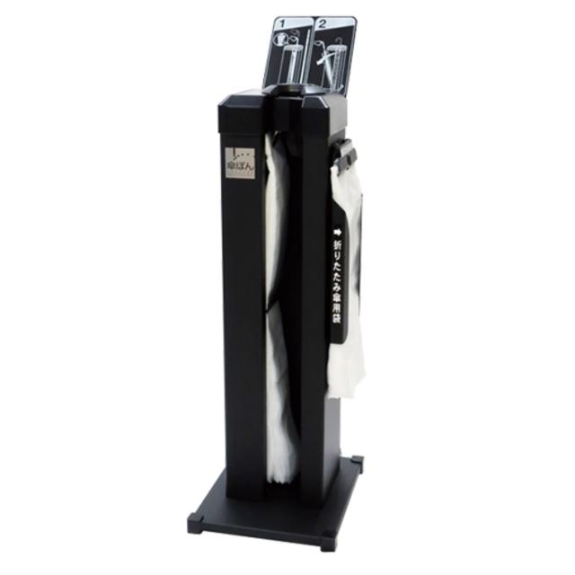 傘袋スタンド スリム ブラックスペシャル仕様 傘ぽん ( 法人限定 折りたたみ傘袋付 傘袋 スタンド 長傘 折りたたみ傘 対応 袋付き 傘袋ホルダー かさ袋 かさ袋スタンド オフィス 会社 事務所 キャスター付き 業務用 )