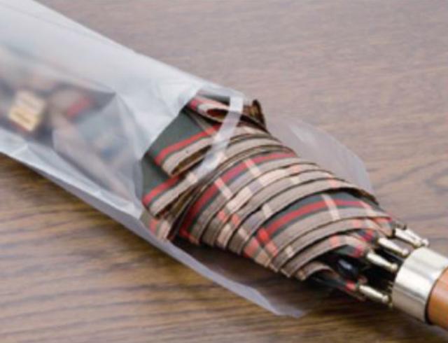 「傘落下防止用の帯」がフロアに傘袋が散らかるのを防ぎます。