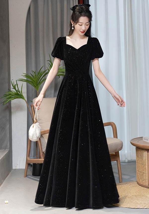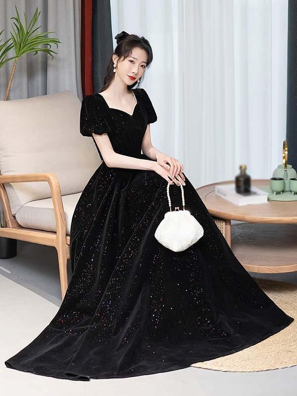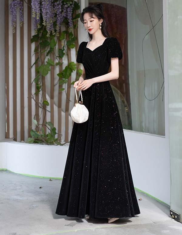 【レビュー投稿で+5%還元】ドレス 大人 ピアノ発表会 ドレス 演奏会 結婚式 フェミニン パーティードレス ロングドレス 袖あり お呼ばれ 可愛い フェミニン 黒