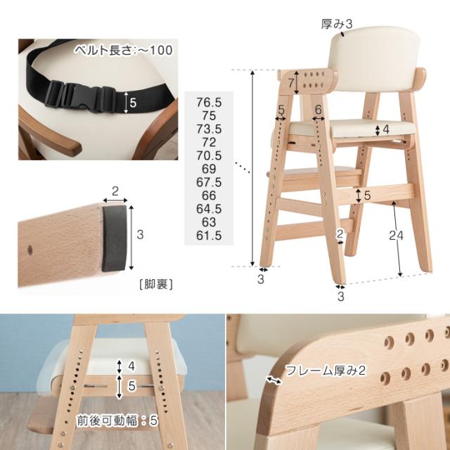 成長に合わせてジャストFIT! グローアップチェア ガード付 ベルト付き 高さ調整 11段階 座面スライド 落下防止 安全 ベルト ベビーチェア ハイチェア キッズチェア ハイタイプ イス 椅子 高さ調節 天然木 ダイニングチェア