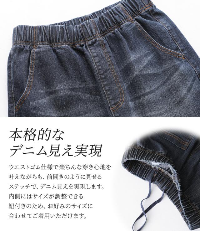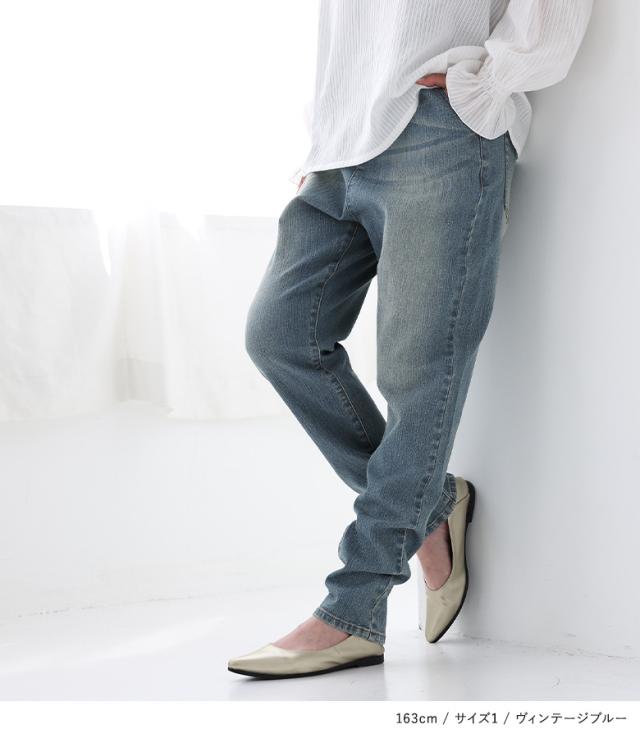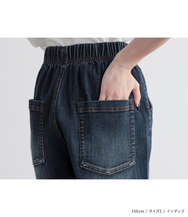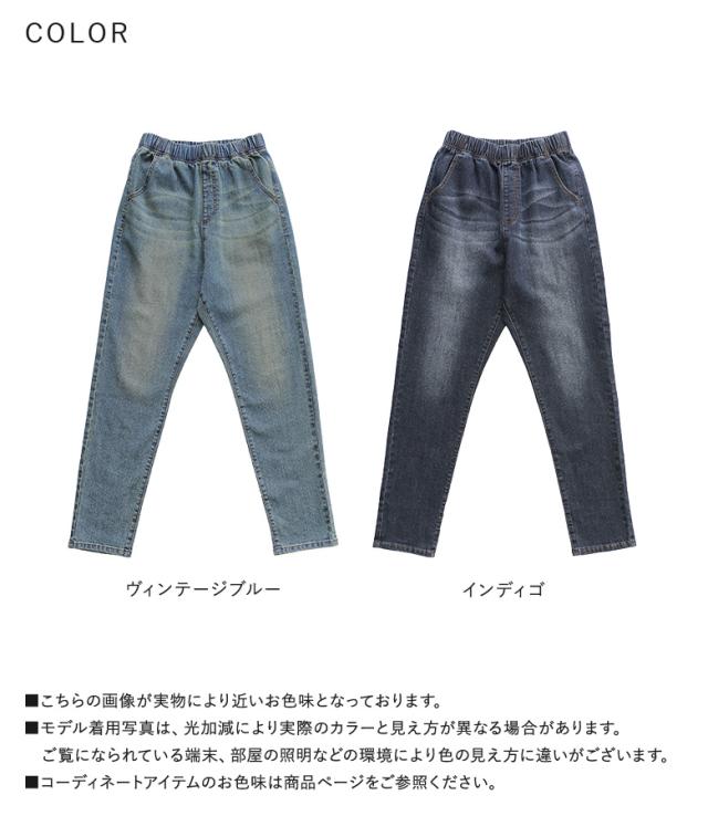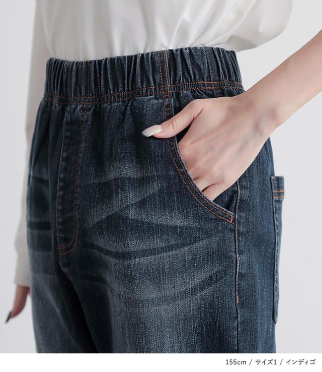『サルエル風デニムレギパン』 【メール便不可】【20】[レギパン レディース デニム ジーンズ ロングパンツ テーパード ストレッチ ロールアップ ウエストゴム イージーパンツ pin0082]