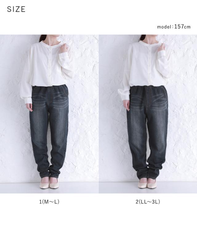 | staff:M/164cm 【普段着用】 トップス: M/L ボトムス: M/L | 【1(M〜L)】 ◆着丈:ウエストで穿いてかかと上3cm位、腰で穿いてかかとから2cm余る位 【2(LL〜3L)】 ◆着丈:ウエストで穿いてかかと位、腰で穿いてかかとから5cm余る位 1(M〜L)は、ウエストにはゆとりがあり、ヒップラインは拾いますが、スッキリとしたシルエットで穿けました。良く伸びるので、履き心地が良かったです♪2(LL〜3L)は、全体的にゆるっとしたシルエットで穿けました。ルーズなシルエットで穿きたい方にオススメです。私の場合は1(M〜L)を選びます。 |