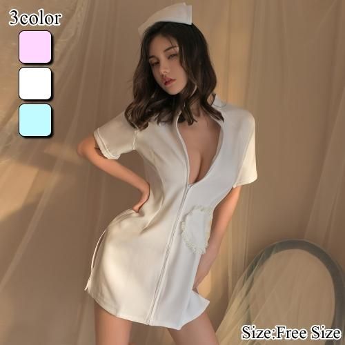 【グラシア】 コスプレ 衣装 コスチューム 仮装 セクシー キュート コス ナース服 スリット しっかり ミニ丈 レース ブルー ピンク ホワイト フリーサイズ