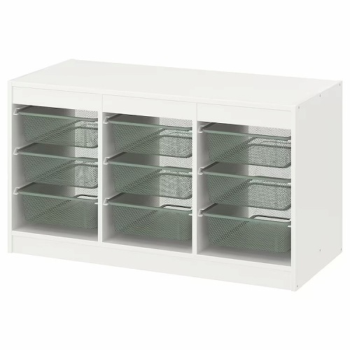 TROFAST トロファスト シリーズのフレームとメッシュ収納ボックスを使えば、大小さまざまなアイテムを整理できるだけでなく、家のほかの場所にも合う収納ソリューションをカスタマイズできます